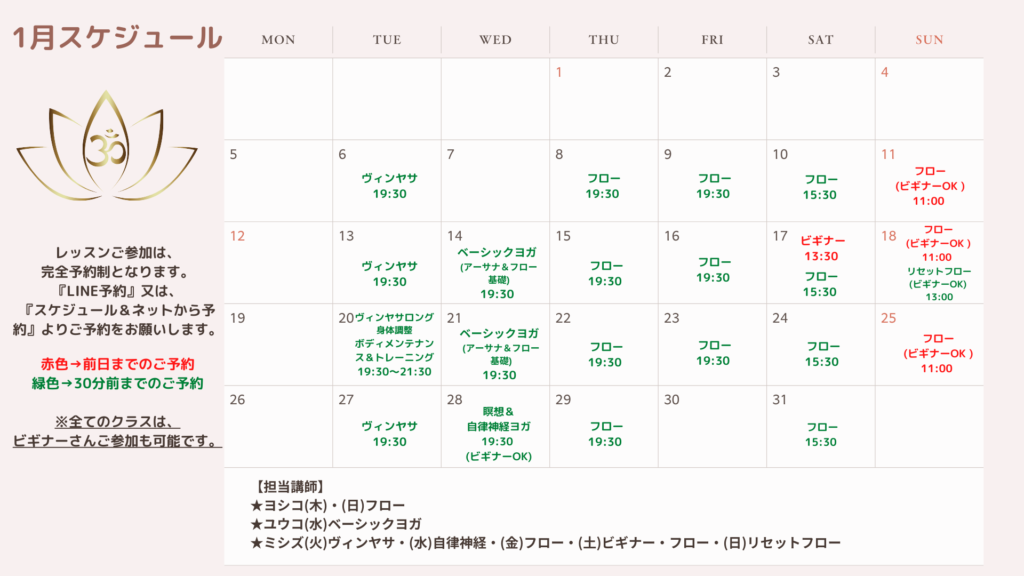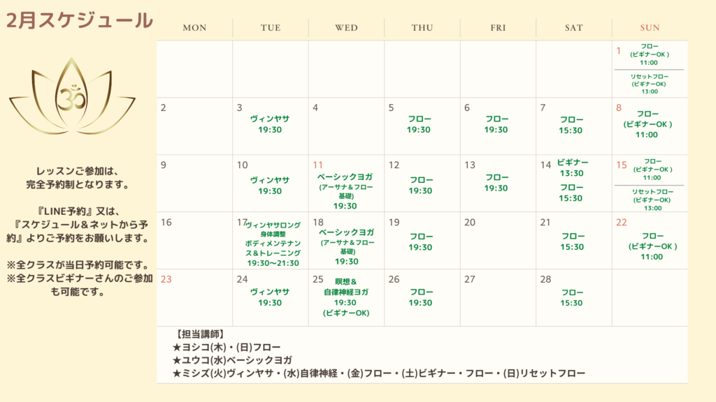 各ヨガ講座コースなども内容がわからないようでしたらお気軽にご質問ください。